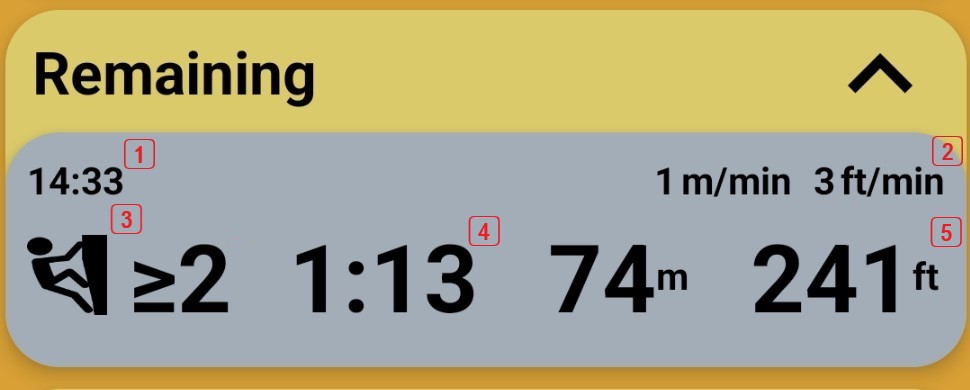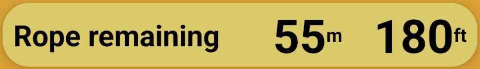 Only displayed when you set the rope length in the Route settings - Remaining climbing/rappelling duration in h:mm
